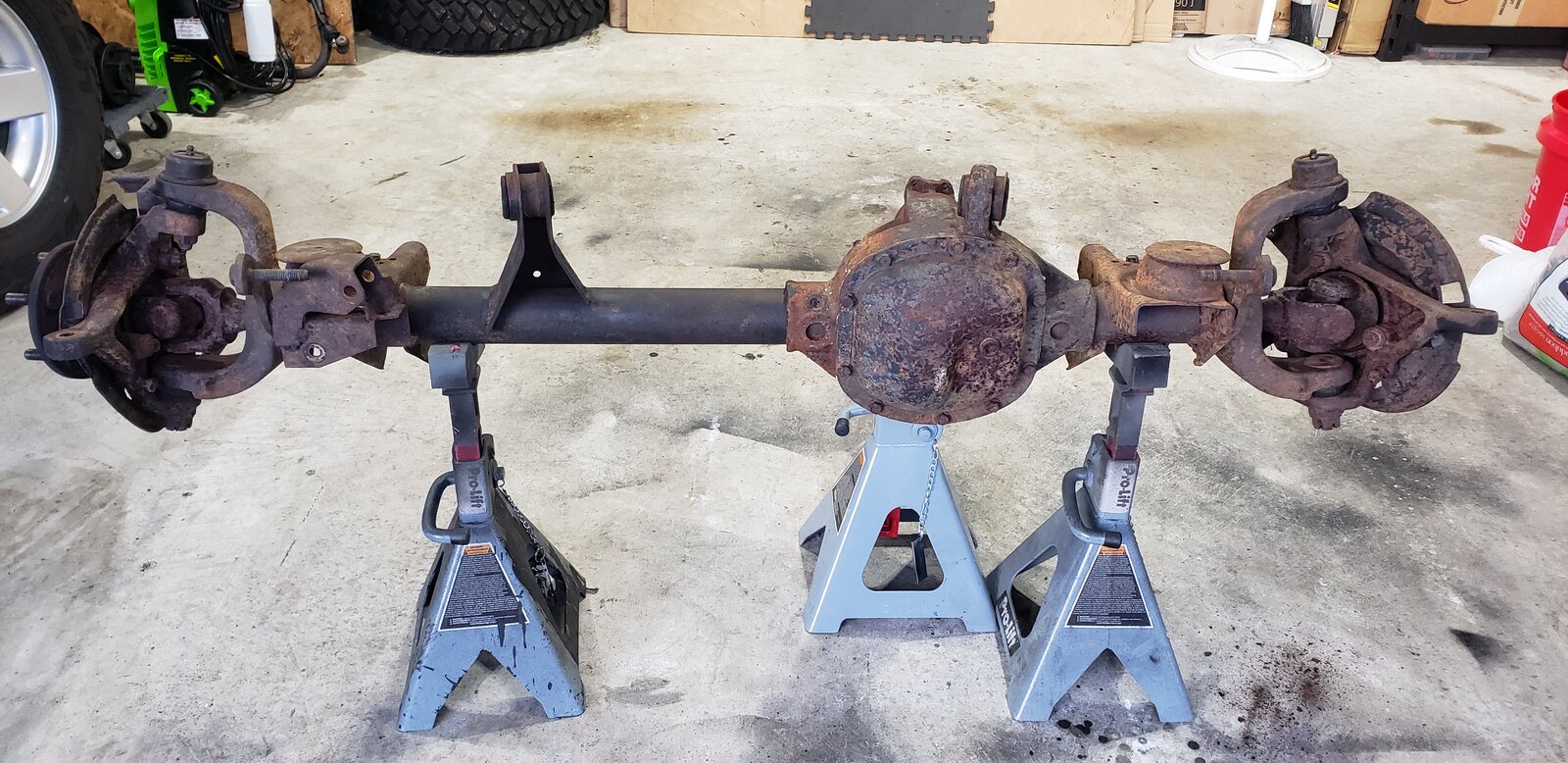 Picked up a spare factory 3.73 geared Dana 44. It was a bit of a impulse buy, but I rarely see them for sale anymore and this one came of a stock jeep that wasn't abused. All the brackets are straight, the bottom of the housing isn't worn, and it only had surface rust.