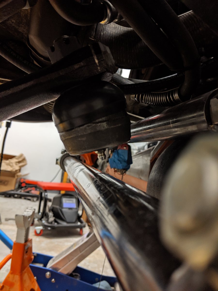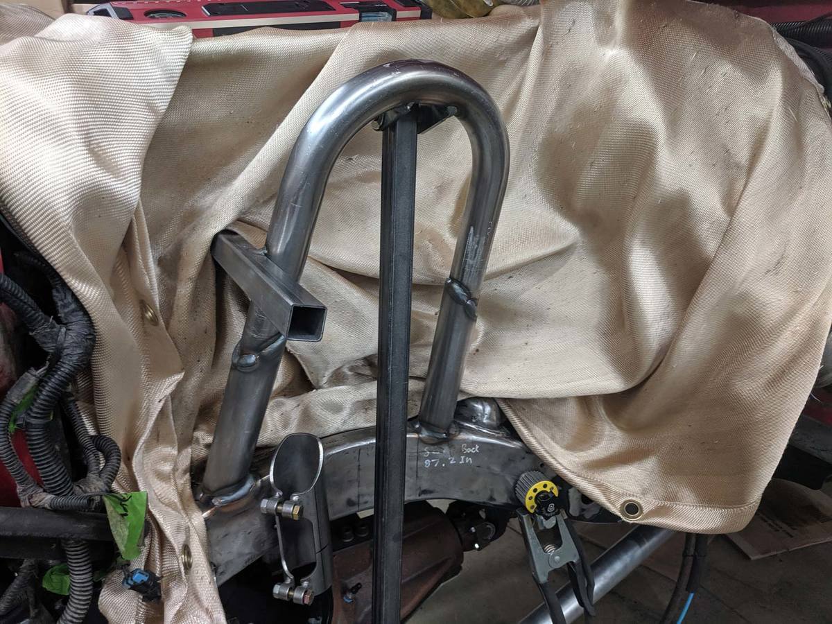 With the center section cut, I placed a sleeve over the 2 ends so they could slide but still be straight. I also raised the hoop up 1/2" off the supercharger to take into account the engine moving around in it's mounts.