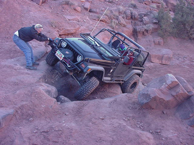 lol, with my first TJ I did Pritchett on 33" tires - detroit lockers on both axles. That was the only trip where I successfully navigated Rocker Knocker without assistance from a strap or winch. It also happens to be the only time I ran Pritchett on 33" tires. It was a small group of about 6 rigs and there weren't any other groups on the trail. We actually turned around at the top of the hill immediately following Rocker Knocker.