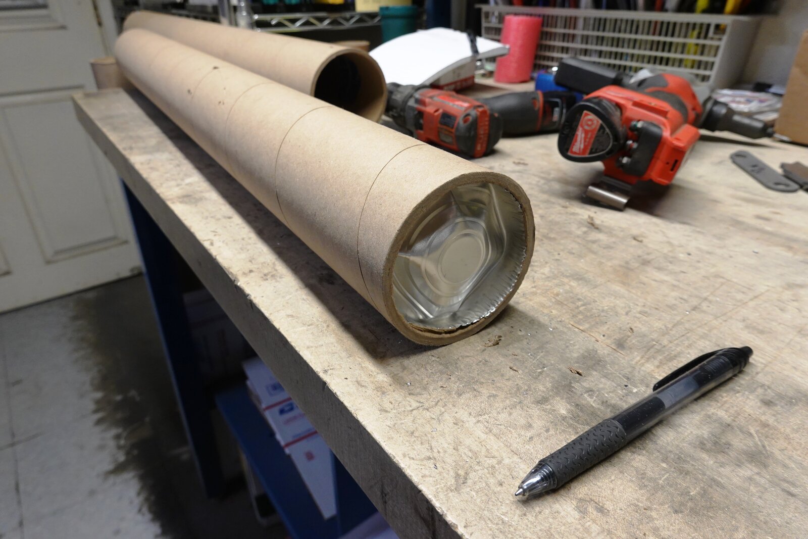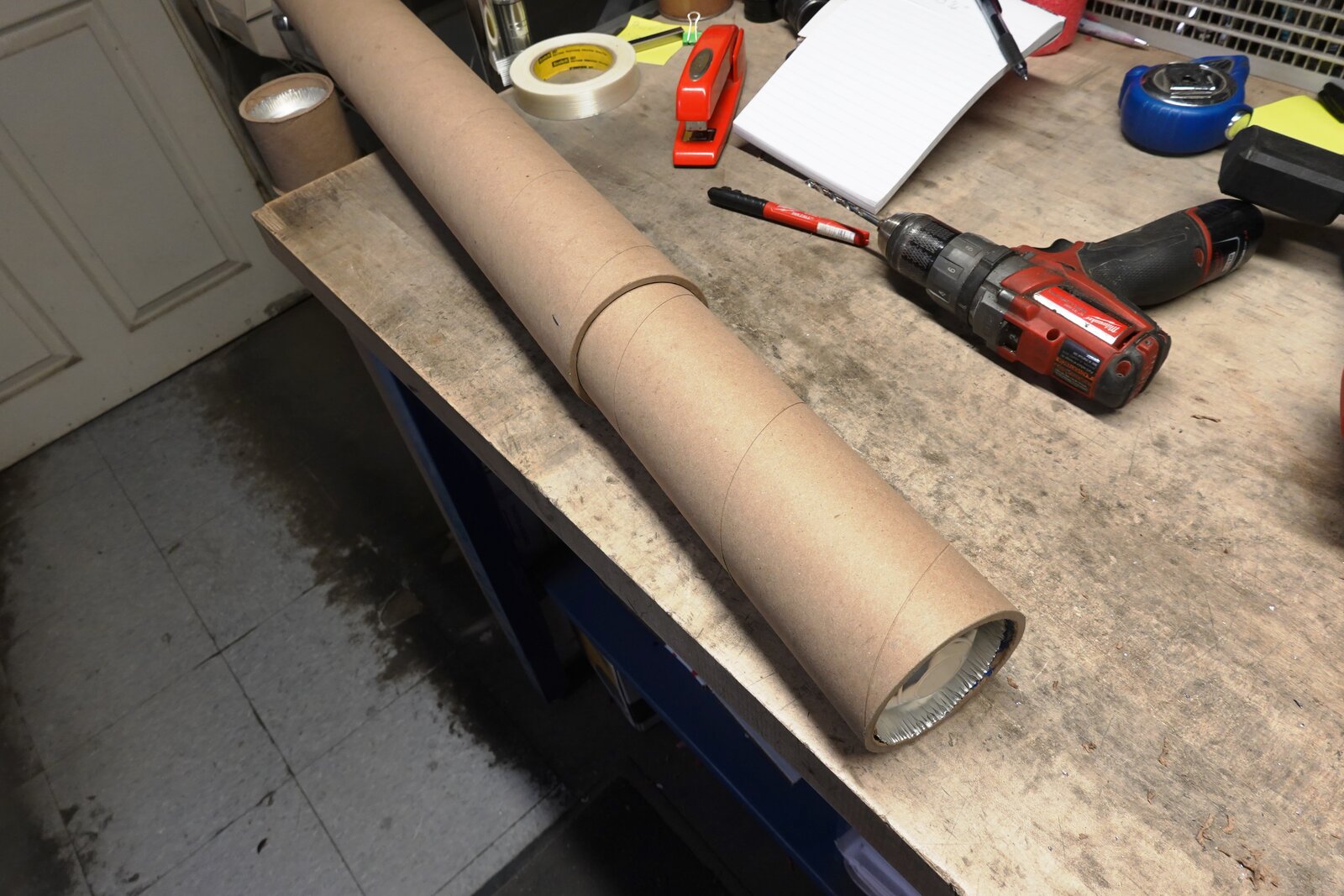 I have a 12" high mark on the packing bench leg. This is one drop from 12" with the tie rod centered on the cap. You can see significant deformation and the cap has moved toward the end of the tube a fair bit.