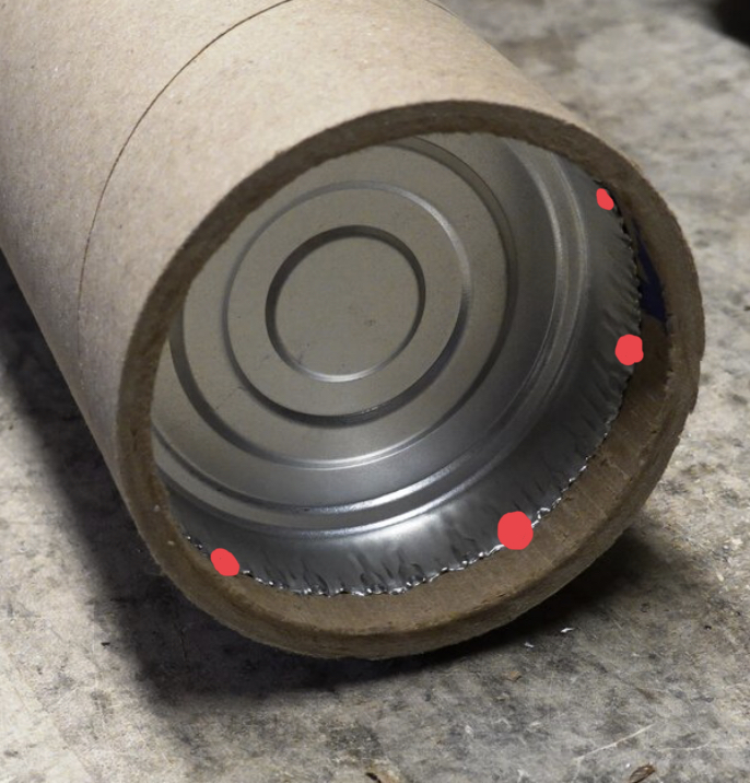Second drop from 12". Far more deformation of the cap and now if it tags something while laying flat, it will likely punch the end cap out completely. Worse, the end of the cap is very sharp and will easily slice through any tape or plastic that I attempt to restrain the cap with.