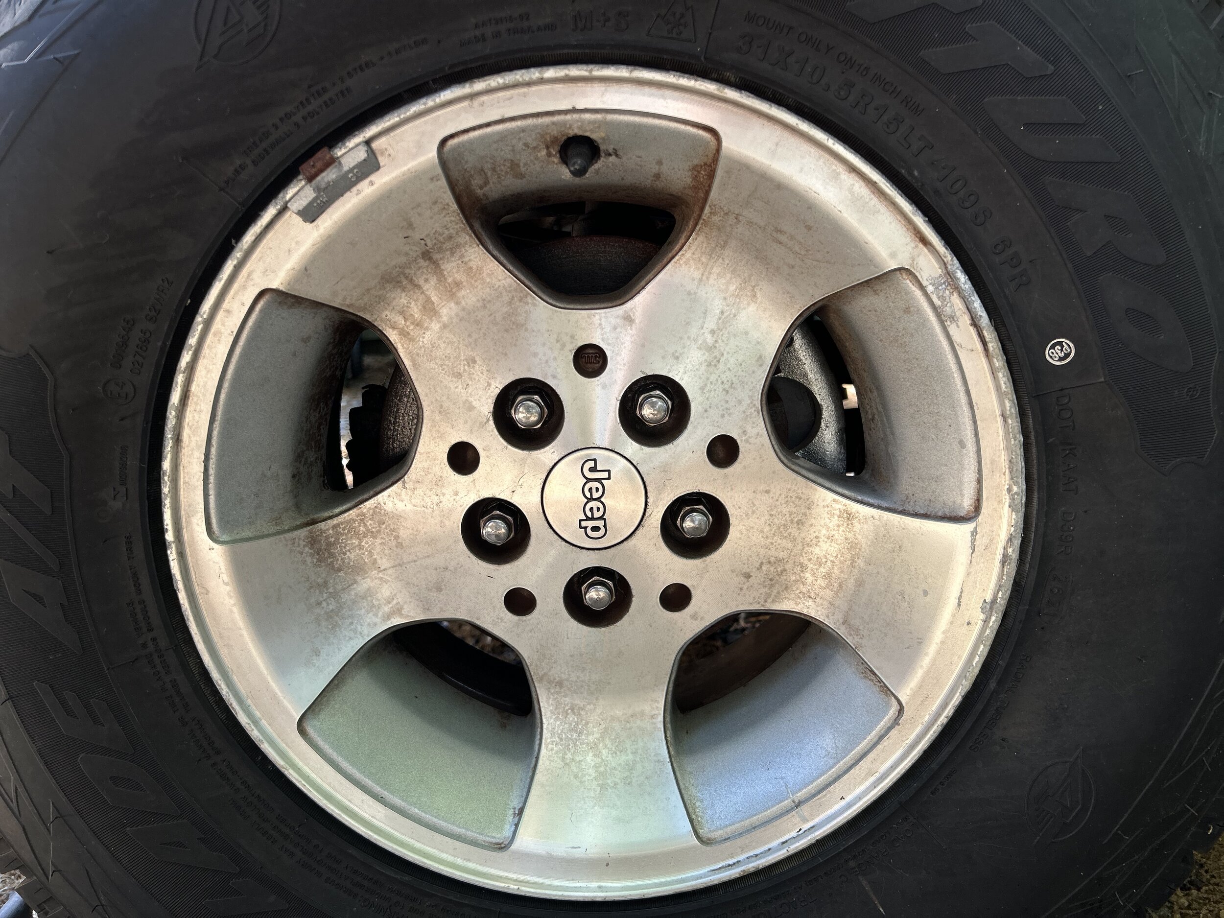 After successfully testing the Sonax wheel cleaner (https://www.amazon.com/dp/B003UT3S6Q?tag=wranglerorg-20) on one of the stock “Canyon” wheels, I continued with the other three. They turned out pretty darned good, or at least I think so! Hopefully, a good coat of wax (or three) will help keep them looking good...